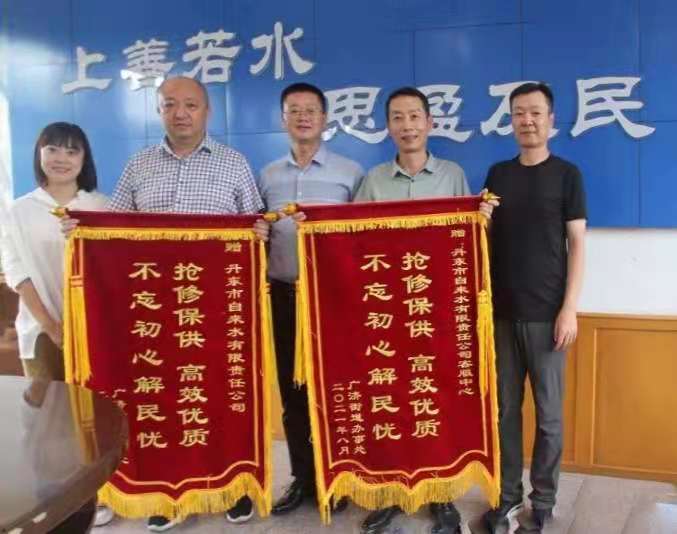 823日,廣濟(jì)街道辦事處及德馨園社區(qū)領(lǐng)導(dǎo)及用戶代表給公司送來(lái)了錦旗,以表達(dá)感激之情。