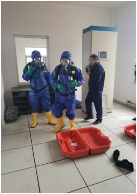 泄氯應(yīng)急操作演習(xí)事前并未提前通知相關(guān)人員,系人工觸動泄氯報(bào)警裝置,警鈴響起后,三灣運(yùn)轉(zhuǎn)值班人員立即到達(dá)氯氣車間,泄氯回收裝置已自動開啟,同時(shí)通知水廠和三灣凈化班組,穿著連體防護(hù)服并佩戴好壓縮空氣呼吸器,三灣凈化班組值班人員佩戴活性炭防護(hù)面罩到達(dá)氯氣車間參與應(yīng)急搶修。